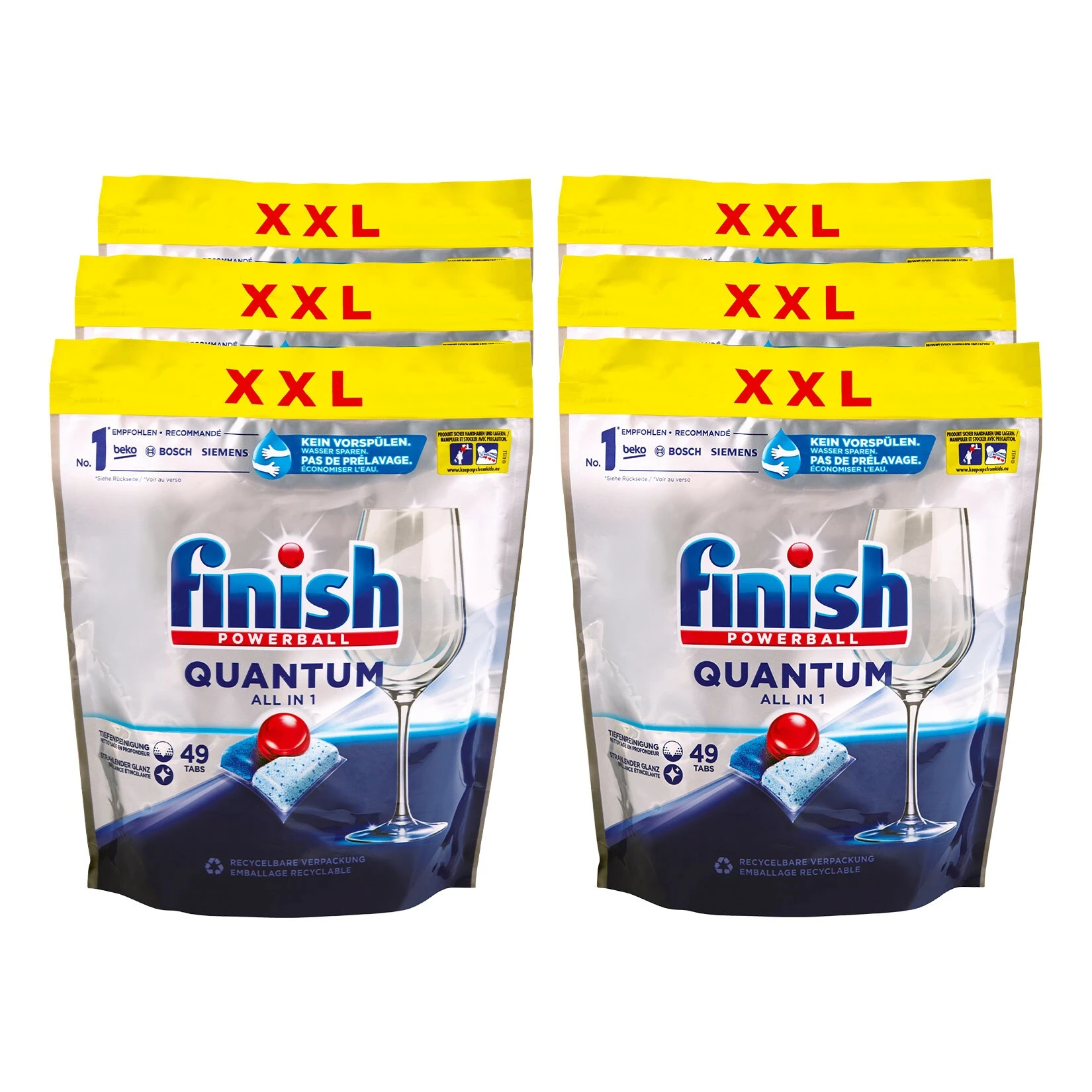 Die Finish Quantum All in 1 Spülmaschinen-Tabs sorgen für Tiefenreinigung und strahlenden Glanz schon beim 1. Spülgang. Ihre kraftvolle 3-Kammer-Formulierung mit Activblu Technology entfernt alle Arten von Speiserückständen – ganz ohne Vorspülen. Zudem kommen die Tabs mit 25 % weniger chemischen Inhaltsstoffen im Vergleich zu den Finish Power All in 1 Tabs aus.