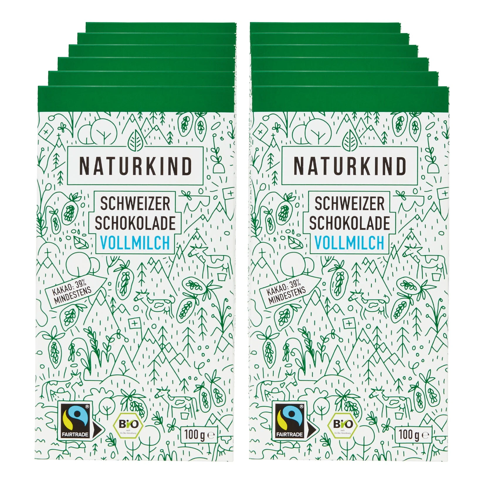 NATURKIND Bio Fairtrade Tafelschokolade Vollmilch 100 G, 12er Pack